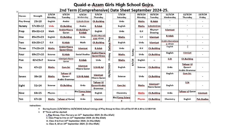 2nd Term (Comprehensive) Date Sheet May 2024-25 Download